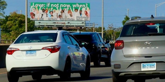 Our service festival hand painted billboard "Love - If not now, when?" is currently posted on I-95 in West Haven. It remains a work in progress. Keep in touch as plans are in the works to gather again in the near future as this IWagePeace Painting for Peace project continues.